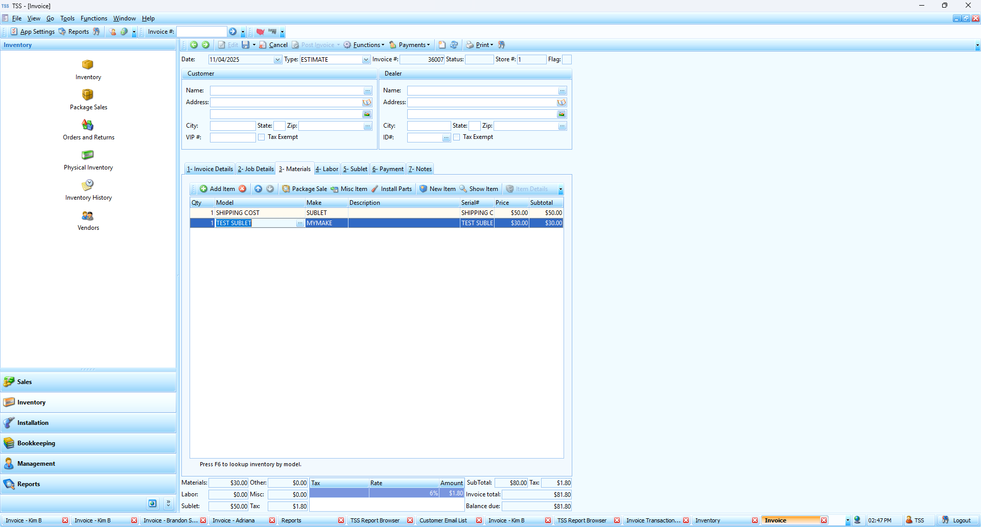 When using the Special Order items feature it is usually best to force serial number for better tracking (although not required). Be sure the item has no inventory on-hand Create a new invoice, add the item to the Materials tab and Save the Invoice ...