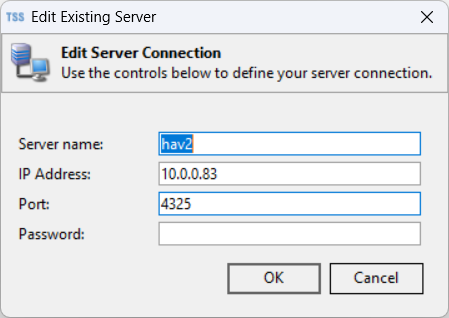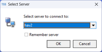 When opening the TSS XP application if you hold down the shift key it will bring up the select server window appears