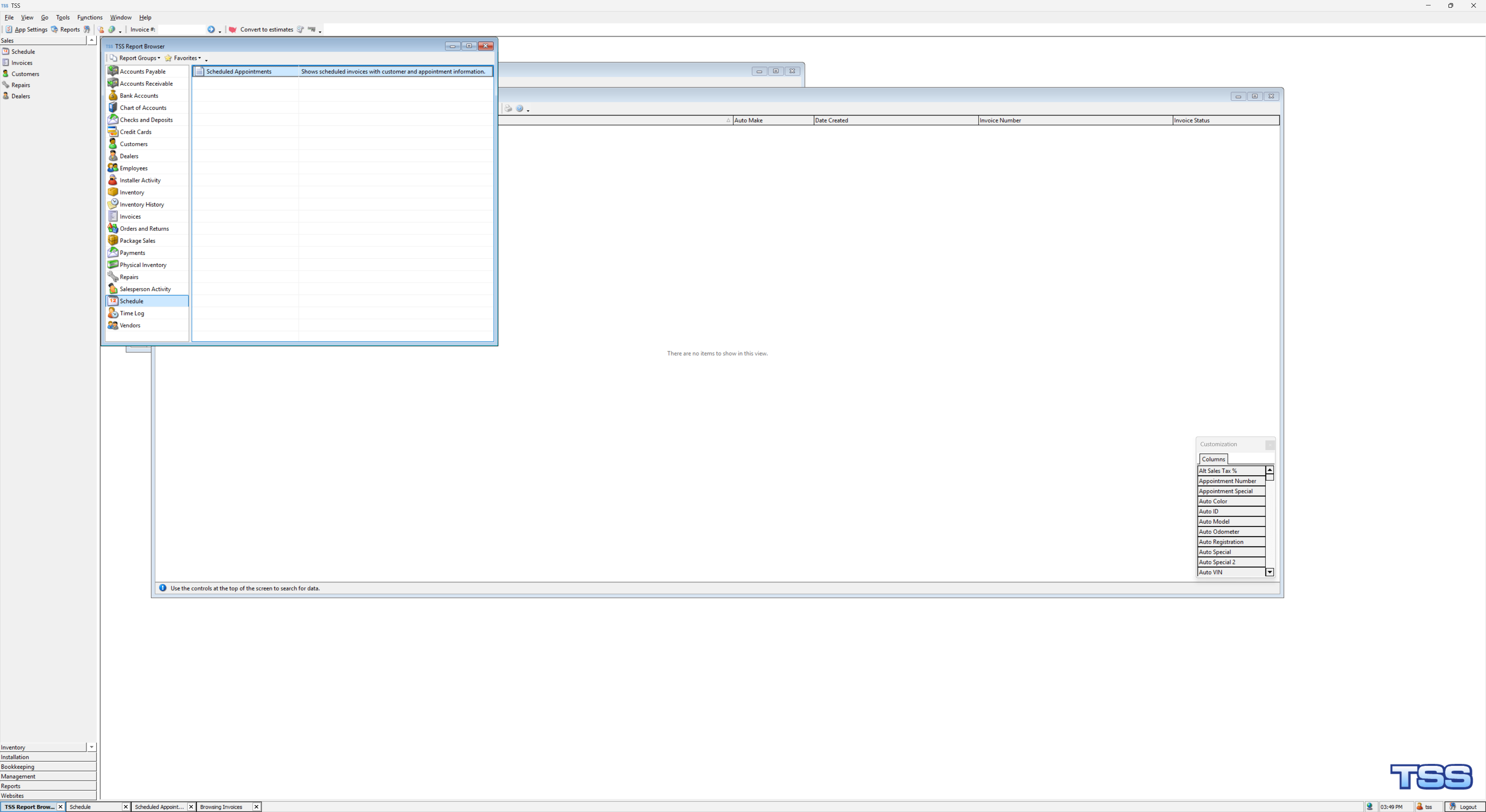 and you can also if you know very limited info you can use all to see all invoices or all inventory but warning when you do that it is not going to be fast